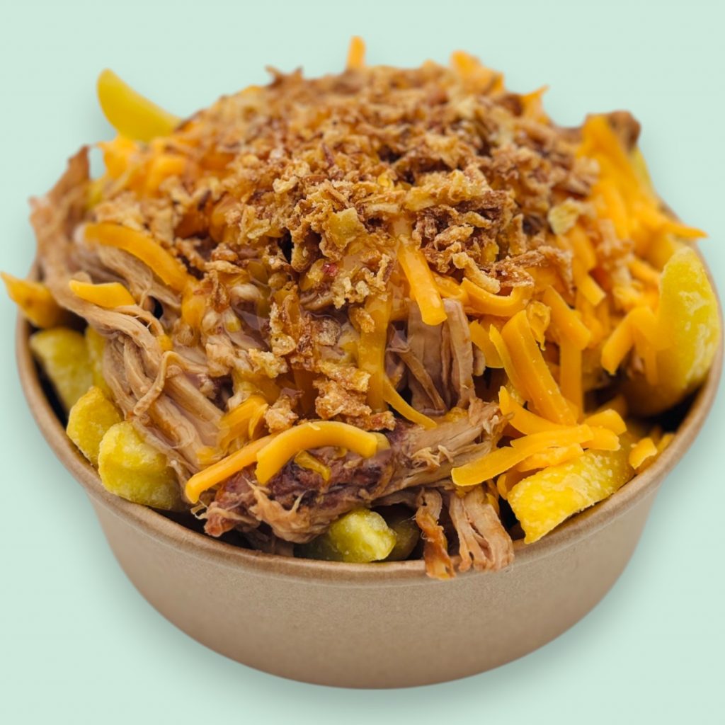 Une délicieuse recette québécoise à base de frites fraiches croustillantes agrémentées de filet mignon de porc effiloché cuit à basse température pendant plusieurs heures et de cheddar rapé, le tout recouvert d’une onctueuse sauce gravy maison… hummm un régal !