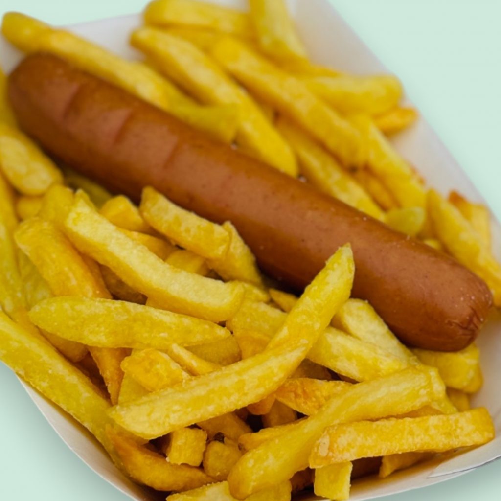 Simple mais délicieux, ce plat se compose de frites fraiches et croustillantes et d’une saucisse de porc, le tout agrémenté d’une sauce de votre choix !